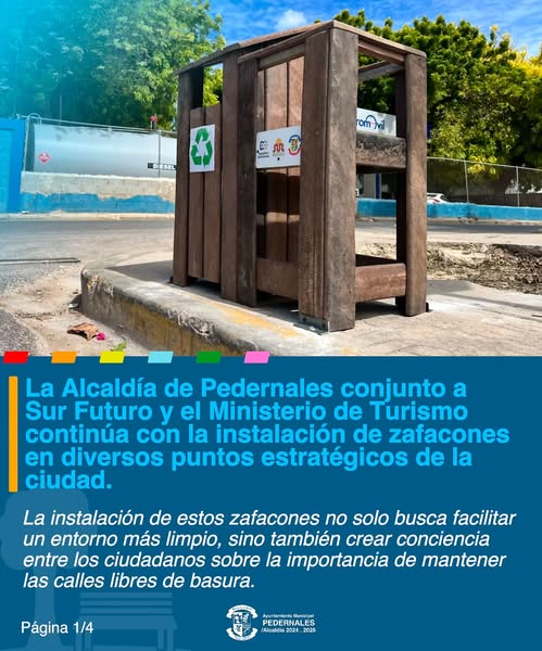 En un esfuerzo por mejorar la limpieza y embellecer la ciudad, la Alcaldía de Pedernales, en colaboración con Sur Futuro y el Ministerio de Turismo, ha iniciado la instalación de zafacones en puntos estratégicos a lo largo del municipio. Esta iniciativa busca no solo promover un entorno más limpio, sino también concienciar a la población sobre la importancia de mantener las calles libres de basura.