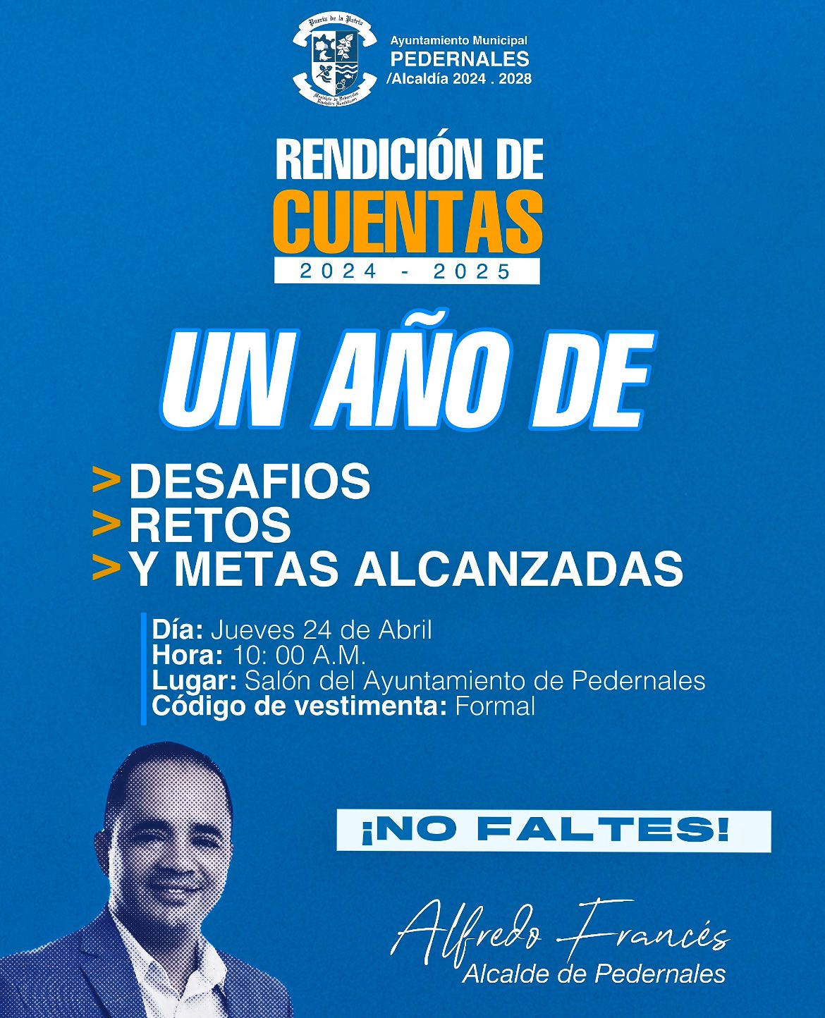 El Ayuntamiento de Pedernales tiene el honor de invitarte al Primer Acto de Rendición de Cuentas 2024-2025.